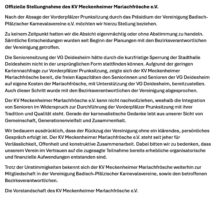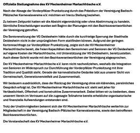 25.01.26 13:33 Uhr Närrische Fasnachtssitzung inkl. Seniorensitzung der VG Deidesheim